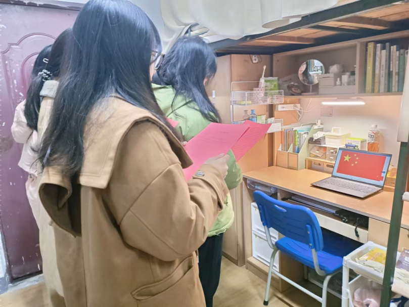 以理化情,引导学生。学院以宿舍为单位,积极开展安全教育和思想政治教育,利用线下线上等多种方式,积极教育引导学生认真学习学生管理规定,提高安全和责任意识,严格遵守宿舍“六个严禁”,增强消防安全意识,不存放、不使用大功率电器。要求学生党员发挥带头作用,做好情况摸排,排查各类安全隐患,确保生命财产安全。