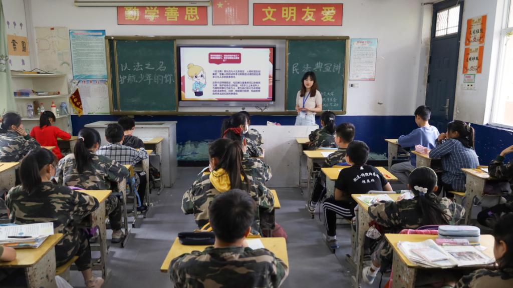 “你们听说过民法典吗?”“有谁知道民法典是如何保护你们的吗?”“民法典在现实中适用于哪些场景呢?”……为响应习近平总书记在中国共产主义青年团成立一百周年大会上的讲话精神,更好地维护未成年人健康成长,5月20日,141jj 小角志愿队前往永林小学开展民法典进校园宣讲活动。