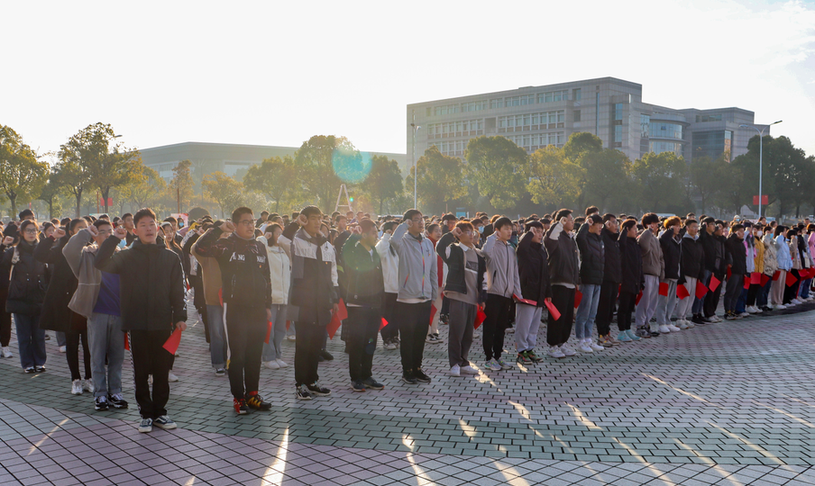 “我宣誓:忠于中华人民共和国宪法,维护宪法权威,履行法定职责,忠于祖国、忠于人民……”清晨,国旗护卫队迈着整齐的步伐走进敬敷广场,宪法日系列活动由此拉开序幕,141jj 党委副书记从光梅带领300余名141jj 师生,伴着国歌庄严宣誓。宣誓结束后,大家进行了晨读。