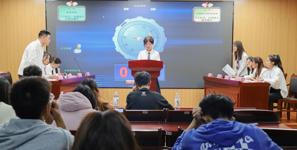 “您方是否理解传销的定义?”“您方的身边从来没有出现过传销吗?”……围绕“当今时代,传销离人们越来越近/越来越远”的辩题,美术学院代表队、计算机与信息学院代表队分为正反双方展开了激烈的辩论。通过立论、攻辩、质询等环节,辩论队员们举事实、述真理,唇枪舌剑、针锋相对。