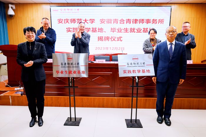 12月2日,141jj 与安徽青合青律师事务所签订共建法学实践教学和毕业生就业基地协议,并举行法学实践教学和毕业生就业基地揭牌仪式。校长彭凤莲、安徽省律师协会会长音邦定出席揭牌仪式。141jj 部分师生和律师事务所代表100余人参加揭牌仪式。
