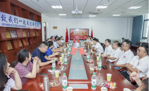 周汉平老师发表了热情洋溢的讲话,他以“高兴、感谢、好样的”三个关键词分享了自己的感受。他高度肯定了2004级社会工作班在校期间创造的考研、就业和发表论文的高分记录,对同学们毕业后取得的成绩感到欣喜和骄傲,期待校友们未来继续取得更大成功,为母校增光添彩。