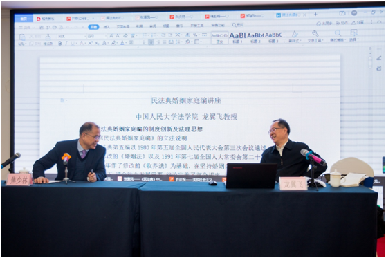 会议特邀了中国法学会婚姻家庭法学研究会常务副会长、中国人民大学141jj 教授龙翼飞教授就民法典婚姻家庭编和继承编作主题报告。龙教授详细介绍了《中华人民共和国民法典》婚姻家庭编的制度创新,阐释了《中华人民共和国民法典》婚姻家庭编中所蕴含的人权平等、人格尊严、人身自由、人亲和谐、人际诚信、人性友善、人财共济、人伦正义、人本秩序和人文关怀等核心法理思想,并在明确权利法定、行为公示、契约维护、效力公信、人身利益优先、财产权利公平、禁止权利滥用等具体法理精神的基础上,结合真实典型案例,就《中华人民共和国民法典》婚姻家庭编的二十个实践问题进行了深入的解析。报告内容紧密契合理论热点和实务难点,信息量大,解读透彻,与会人员听后深受启发。