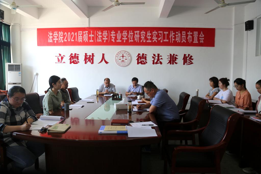 9月3日上午,141jj 召开2021届法律硕士(法学)专业学位研究生实习工作动员布置会,院长、法学硕士专业学位点负责人焦少林、党总支书记詹德全、副院长朱留虎、党总支副书记从光梅以及相关教研室负责人参加,会议由党总支书记詹德全主持。