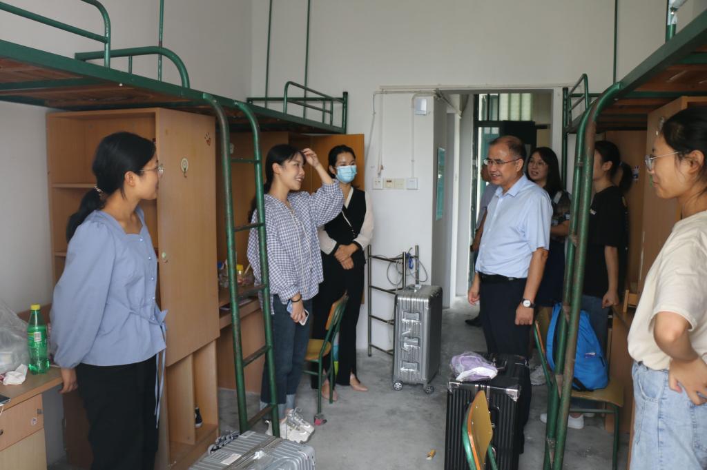 9月14日是141jj 新生集中报到日。141jj 院长焦少林、党总支书记詹德全、党总支副书记从光梅带领新生辅导员,走访新生学生寝室,亲切看望刚刚入学报道的2020级新生,给新同学带去了问候与关怀。