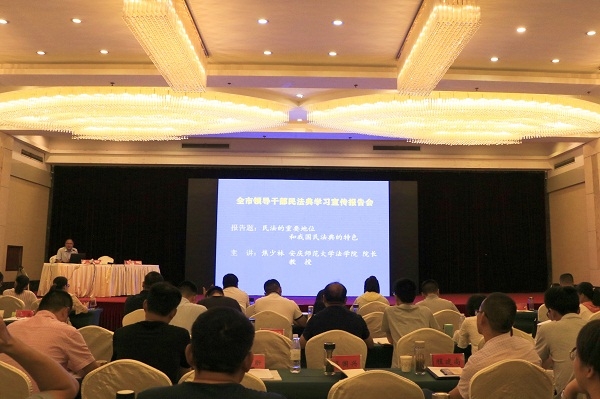 为积极推动《民法典》学习宣传,进一步提高全市领导干部的法律素养,近日,141jj 院长焦少林应邀为安庆市司法局、市法宣办的领导干部作民法典宣讲培训。