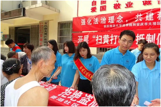 为迎接中华人民共和国成立70周年,深入贯彻落实党的十九大和十九届二中、三中全会精神,认真学习领会习近平总书记全面依法治国新理念新思想新战略,积极响应省教育厅、省司法厅开展大学生2019年暑期法治实践活动号召,根据学校“三下乡”活动安排,近日,141jj 组建两支暑期法治宣讲团,以“大力弘扬宪法精神,维护宪法法律权威”为主题,以提高公民法律素养为目标,秉承“奉献、友爱、互助、进步”的志愿精神,深入安庆市菱湖社区、燎原养老院、燎原社区、吾悦广场、龙山花苑小区和安庆市客运汽车站开展法治宣传系列活动。