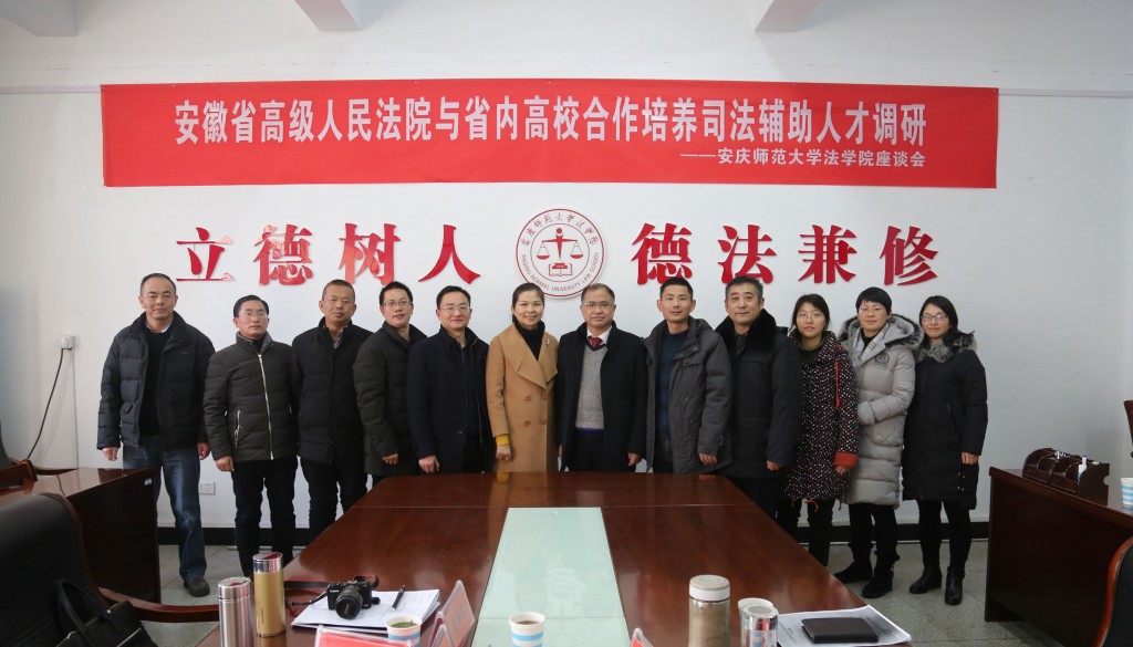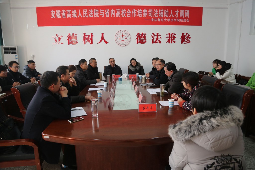 近日,安徽省高级人民法院法官管理处副处长虞雅莉一行5人到141jj 开展关于与省内高校合作培养司法辅助人才的相关调研,141jj 党政领导高度重视,于12月12日下午召开了专题调研座谈会。会议由院长焦少林主持,省高院调研组成员、安庆市中级人民法院相关人员、学院领导班子、部分教职工以及学生参加了会议。