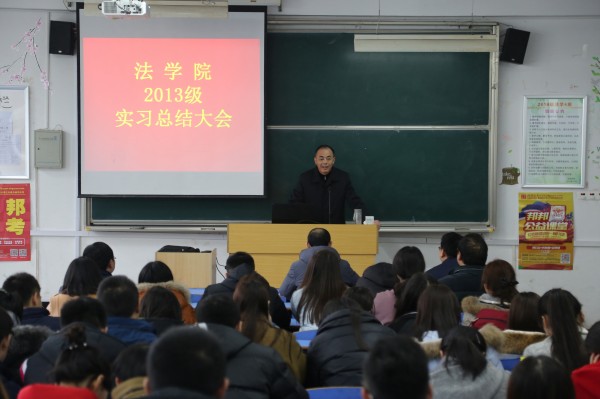 2017年1月6日下午14:30,141jj 在文津楼405教室召开了2013级法学专业实习总结大会,校教务处实验实训中心主任孙敬牛、141jj 副院长朱留虎、141jj 实习指导教师以及2013级全体同学参加了大会。