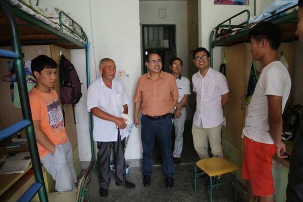 9月9日上午,焦少林、詹德全在新生班级辅导员的陪同下,第一时间深入到新生宿舍,了解新生住宿情况,实地解决同学们可能遇到的问题。每到一个宿舍,焦少林都亲切地询问新生家庭情况和入学后的生活情况,提醒新生注意人身财物安全,并勉励新生入学后要及时做好学业规划,好好学习,用优良的成绩回报家长和社会。