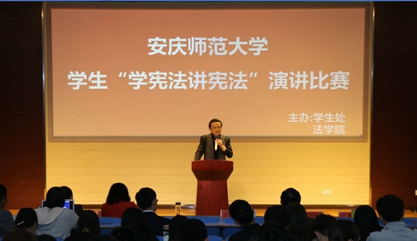 据悉,本次比赛依据安徽省教育厅下发的《关于开展全省学生“学宪法讲宪法”活动的通知》展开,由校学生处和141jj 联合举办。自10月12日以来,各学院举办“学宪法讲宪法”演讲比赛初赛,经过多次选拔,最终有18位选手进入决赛。