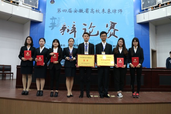 本次比赛分初赛、复赛、半决赛、决赛四个阶段。初赛队伍来自合肥工业大学、安徽大学等全省19所高校法学专业本科学生代表队。经过校内选拔,141jj 由张然、刘婷、周雪、何田玉、王琦五名正式队员和孙晓瑜、陈晨、孙亚玮三位陪练队员组成的代表队参赛。比赛中,141jj 代表队不畏强手,积极应战,在各轮激战中一路过关斩将,从19支辩论队伍中脱颖而出,挺进决赛,最终获得了团体季军、二等奖的优异成绩,张然、刘婷荣获“优秀辩手”称号,邱少晖、汪博武两位老师获得“优秀指导教师”称号,学校获得优秀组织奖。