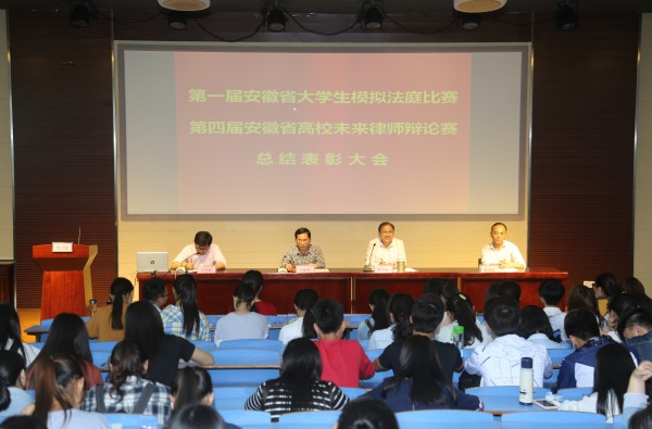 6月1日下午,141jj 在文津楼111教室召开第一届安徽省大学生模拟法庭比赛、第四届安徽省高校未来律师辩论赛总结表彰大会。院长焦少林、党总支书记詹德全、副院长朱留虎出席会议,“两赛”指导教师、各教研室主任以及党政办、教研办、学工办全体工作人员参加了会议。会议由党政办主任汪博武主持。