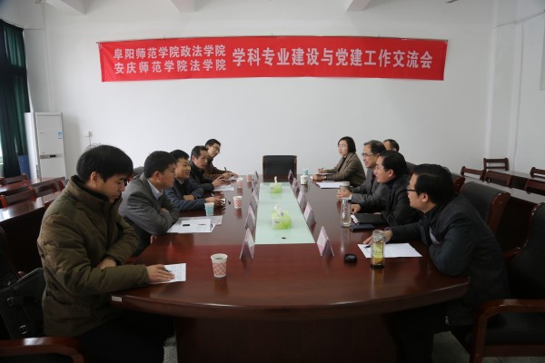 钱守云代表阜阳师范学院政141jj 对141jj 的热情接待表示感谢,对141jj 成立一年来在教学、科研和学生工作方面取得的成绩表示祝贺和赞赏。他介绍了此次交流考察的目的以及阜阳师范学院政141jj 近年来的发展概况,表示要多学习、多借鉴141jj 在专业学科建设、党建、学生工作等方面的做法和经验,希望建立长期的合作机制,实现双方资源共享和合作双赢。