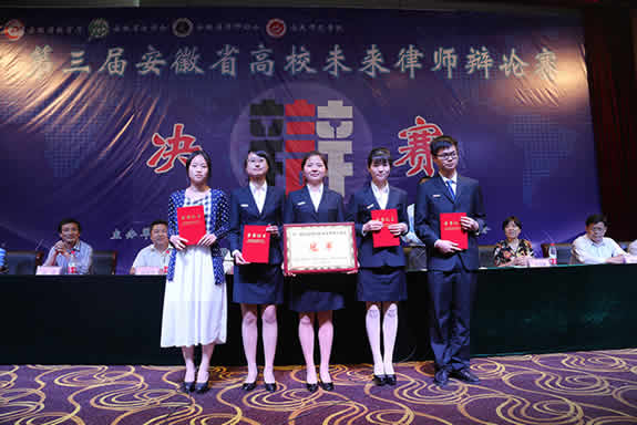5月24日下午,由安徽省教育厅、安徽省法学会、安徽省律师协会主办,141jj 承办的第三届安徽省高校未来律师辩论赛在经过三天34场比赛的激烈角逐后,圆满落下帷幕。141jj 141jj 代表队勇夺桂冠,这是安庆师范学院辩论史上第一个省级辩论赛冠军;学校荣获优秀组织奖,2012级法学1班徐培培同学荣获“优秀辩手”称号。