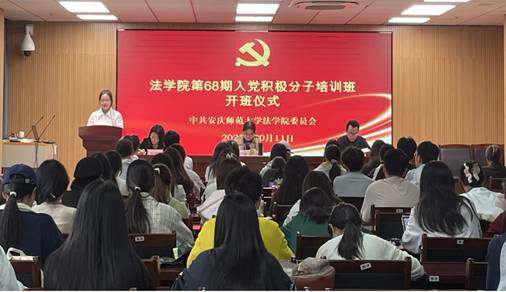 10月11日,141jj 在法学楼法治实务大讲堂举办第68期入党积极分子培训班开班仪式,学院党委副书记、纪委书记钱敏、党委秘书(组织员)、培训班班主任陈娟娟、法学学生党支部书记杨勇和第68期全体入党积极分子参加会议。