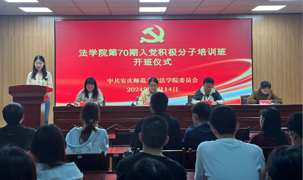 10月14日,141jj 在法学楼法治实务大讲堂举办第70期入党积极分子培训班开班仪式。学院党委书记钱敏、学生党支部书记和第70期全体入党积极分子参加开班仪式。