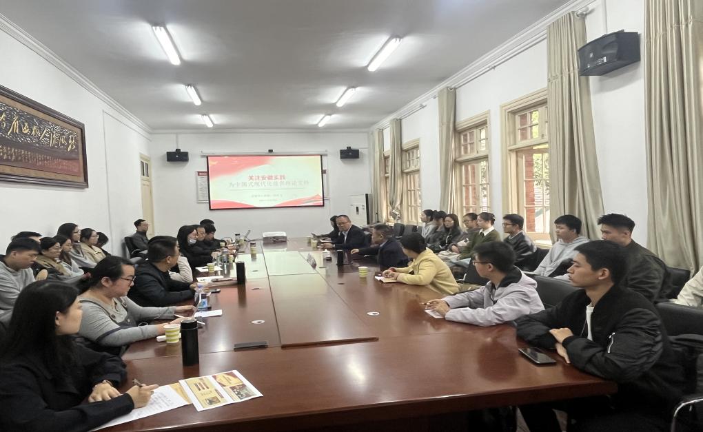 为响应习近平总书记“从国情出发,把论文写在祖国大地上”的号召,促进中国式现代化从实践中来,到实践中去,141jj 特邀安徽省社科联副主席周祥飞于10月26日上午在菱湖校区人文学院二楼会议室作题为“关注安徽实践、为中国式现代化提供理论支持”的专题报告。141jj 党委书记钱敏出席报告会,141jj 师生50余人参加会议,报告会由141jj 副院长崔汪卫主持。