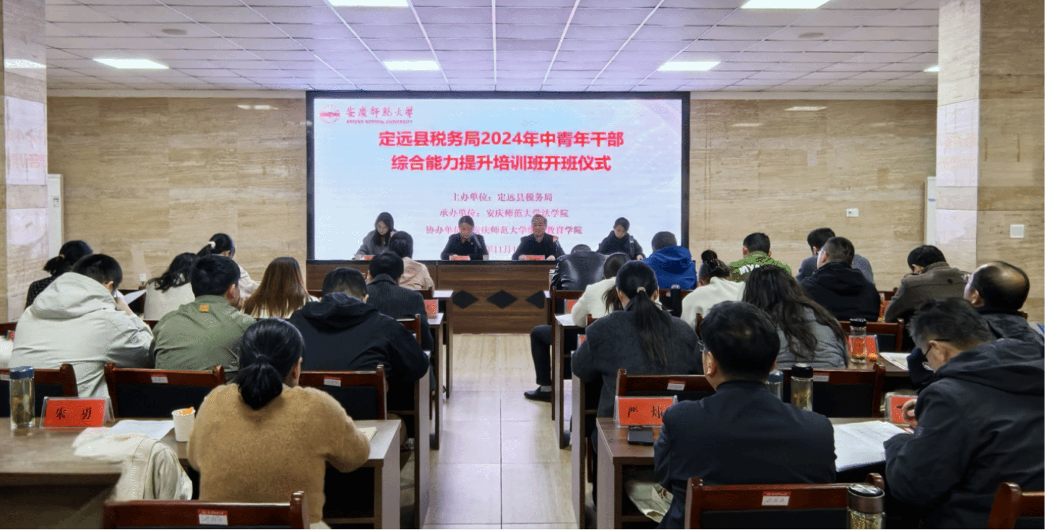 11月19日至22日,由141jj 承办的定远县税务局2024年中青年干部综合能力提升培训班在141jj 举办。定远县税务局一级主办王国新、141jj 党委书记钱敏、继续教育学院培训部负责人及141jj 相关负责人参加开班仪式。定远县税务局中青年干部近40人参加培训。