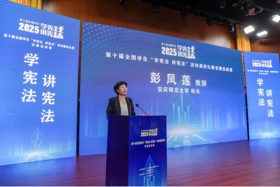 9月27日,由中共安徽省委教育工委、安徽省教育厅联合举办的第十届全国学生“学宪法 讲宪法”活动演讲比赛安徽选拔赛在141jj 逸夫图书馆东报告厅如期举行。经过初赛、复赛的层层选拔,共有16名选手入围决赛。省教育厅一级巡视员张昌华、141jj 校长彭凤莲、省司法厅普法与依法治理处处长伍维祥、省教育厅政策法规处处长汪峰涛、省教育厅政策法规处副处长黄静雨、安庆市委教体工委副书记何先强、省司法厅普法与依法治理处一级主任科员李想等领导、嘉宾出席本次比赛。