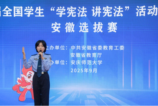铿锵有力的声音、干净利落的动作、饱含情感的语调……“我想通过讲故事的方式,将宪法知识传递给大家。”安徽公安学院李奕文身着警服,将宪法知识与自身经历紧密结合,向观众讲述宪法在人们日常生活中的重要作用。她表示,作为未来的警务工作者,她深刻明白宪法是执法的根本遵循,今后,她会以更扎实的专业素养,在践行宪法精神的道路上勇毅前行,为普及宪法知识贡献一份力量。