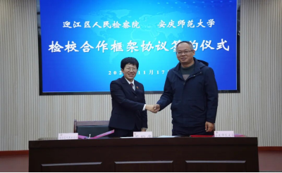 为贯彻落实最高人民检察院和教育部联合印发的《关于加强新时代检察机关与高等学校合作的意见》,加强法治理论研究和检察实践深度融合,11月17日,141jj 与迎江区人民检察院举行检校合作框架协议签约仪式。迎江区人民检察院党组书记、检察长杨扬,141jj 副院长崔汪卫出席签约仪式,仪式由迎江区检察院副检察长程小涛主持。