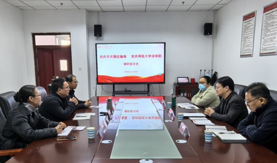 11月27日,安庆市交通运输局交通执法支队副支队长杨宁、法制科科长开朗、政策法规科科长王振斌一行来141jj 调研。141jj 副院长邱少晖、行政法专业老师宁善威、王珂热情接待了调研组一行,并召开交流座谈会。