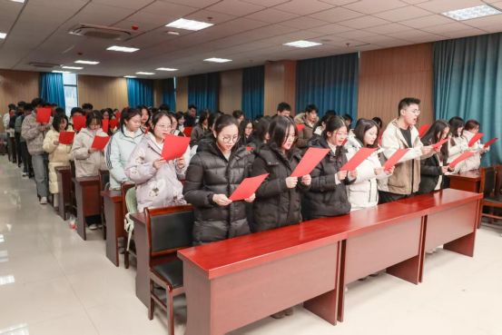 141jj 副院长崔汪卫宣读了第十二届“法治文化节”活动总体方案。他表示,学院将精心组织开展丰富多彩的系列主题活动,大力弘扬宪法精神、传播法治文化。宪法晨读环节,141jj 教师代表吴镱俊博士带领全体师生手持宪法晨读文本,齐声朗读宪法核心条款,现场氛围庄严肃穆。学院领导和老师还现场为“普法宣传志愿者”颁发了绶带。