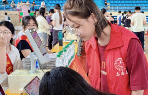迎新活动当天,志愿者们迎着初升的太阳,在各自的岗位集结完毕,迎接新生的到来。他们身着统一的志愿者服装,佩戴着鲜明的身份标识,分布在校园内的各个关键区域,为新生提供全方位的引导与帮助。迎新志愿者们用最温暖的笑容和最诚挚的问候,为新生及家长送上了第一份来自141jj 的关怀。他们不断穿梭在寝室之间,帮助新生及家长搬运行李,同时又化身为校园导游,带领新生参观校园,介绍学院文化及校园环境。报到现场,志愿者们分工明确、各司其职,熟练掌握报到流程,引导新生们按照既定流程完成注册、登记等报到手续,耐心解答他们的疑问,确保报到过程顺畅无阻。此外,为了让新生更快地融入141jj 大家庭,学生会还特意准备了印制有新生名字和祝福语的可乐,作为礼物送给每一位新生。