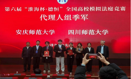 11月24日,由中国法学会法学教育研究会模拟法庭教学专业委员会、江苏师范大学主办,山东师范大学承办,德恒律师事务所协办的第六届“淮海杯·德恒”全国高校模拟法庭竞赛在山东师范大学圆满落下帷幕。经过多轮激烈的比拼,141jj 代表队最终获得代理人组季军,参赛队员张蕾、周孝予获得优秀辩手奖。