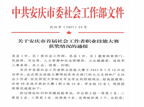 近日,安庆市首届社会工作者职业技能大赛暨首届安徽省社会工作者职业技能大赛安庆地区选拔赛圆满落幕。141jj 8名学子凭借优异的表现,包揽大赛一、二、三等奖和优秀奖。