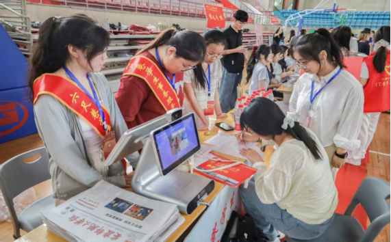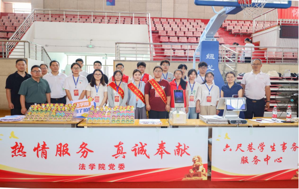 学院团委在报到现场摆放了众多充满法学元素的徽章、指引牌和合照墙,营造出了浓厚、温馨的迎新氛围。迎新志愿者身穿统一服装,佩戴鲜明标识,为新生提供全方位引导和帮助。他们分工明确、各司其职,熟练有序地引导新生按照流程完成注册、登记等报到手续,耐心细致地答疑解惑,充分展现出141jj 青年学生良好的精神风貌。