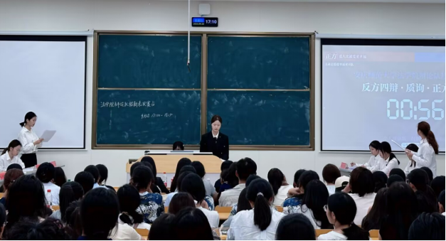 9月28日,由141jj 学生会联合大学生青年法学会举办的辩论表演赛在教学楼C208教室如期举行,141jj 200余名学生到场观摩。