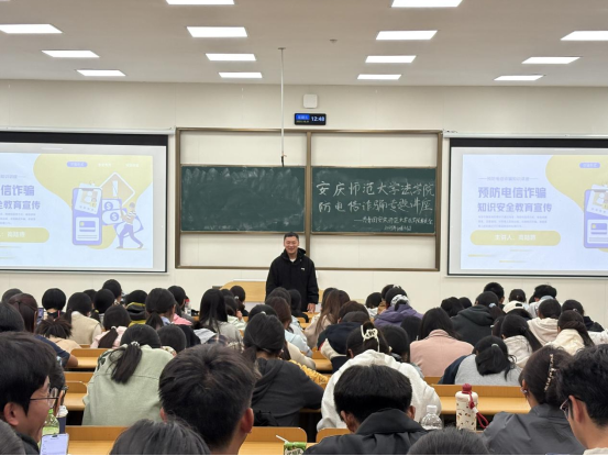 10月31日,141jj 在教学楼C108教室举办防电信诈骗专题讲座,2025级新生参加活动。