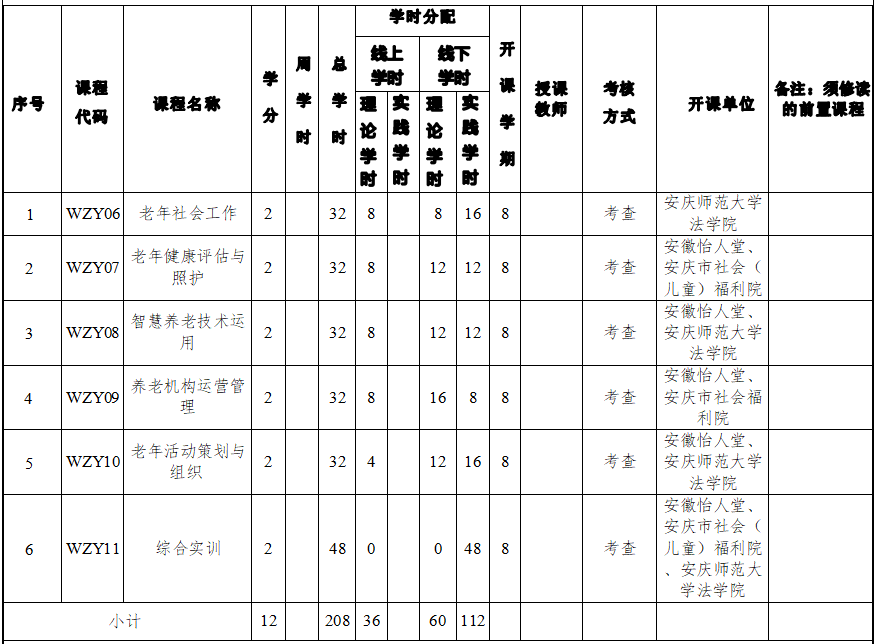 修满学分后,可优先获得安徽怡人堂老龄产业发展有限公司、安庆市(儿童)社会福利院及相关合作企业的实习与就业推荐机会。