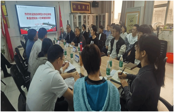 11月3日,141jj 副院长朱留虎带领法学教研室、知识产权教研室教师赴阜阳师范大学141jj 开展联动教研活动。阜阳师范大学141jj 党委书记马健、院长余为青、副书记李阳、副院长吴万群、教研室主任及部分教师代表出席交流活动。
