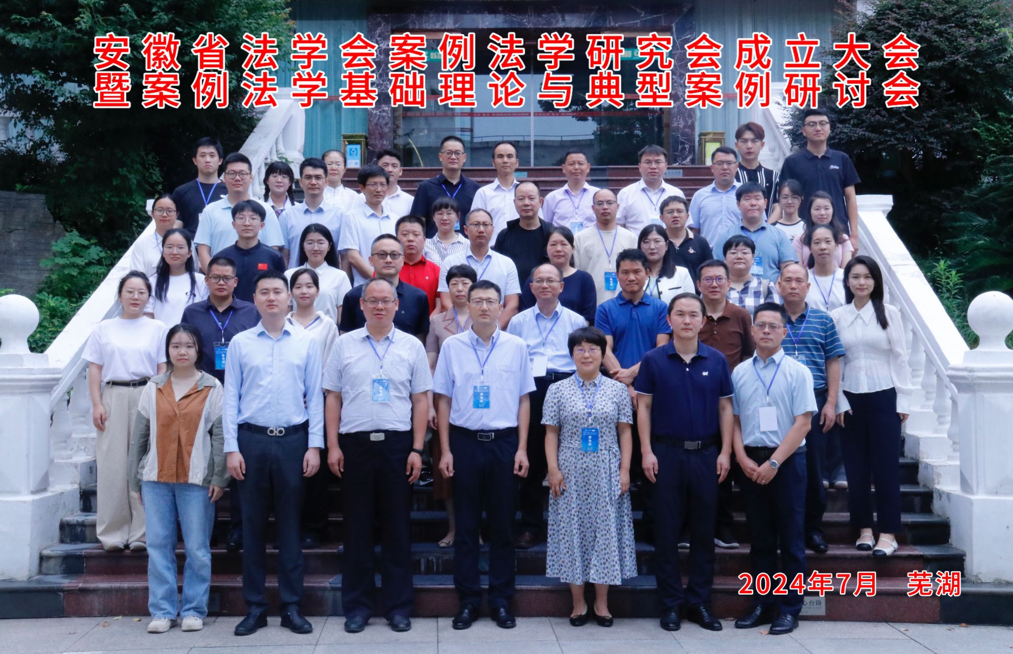 2024年7月27日,由安徽省法学会主办,安徽师范大学141jj 承办的安徽省法学会案例法学研究会成立大会在芜湖铁山宾馆举行。大会由安徽省法学会常务理事周振杰教授主持,安徽师范大学党委常委、副校长高峰致辞。141jj 副院长崔汪卫、141jj 史文平博士应邀参加成立大会。会议选举141jj 副院长崔汪卫教授为副会长,史文平博士为理事。