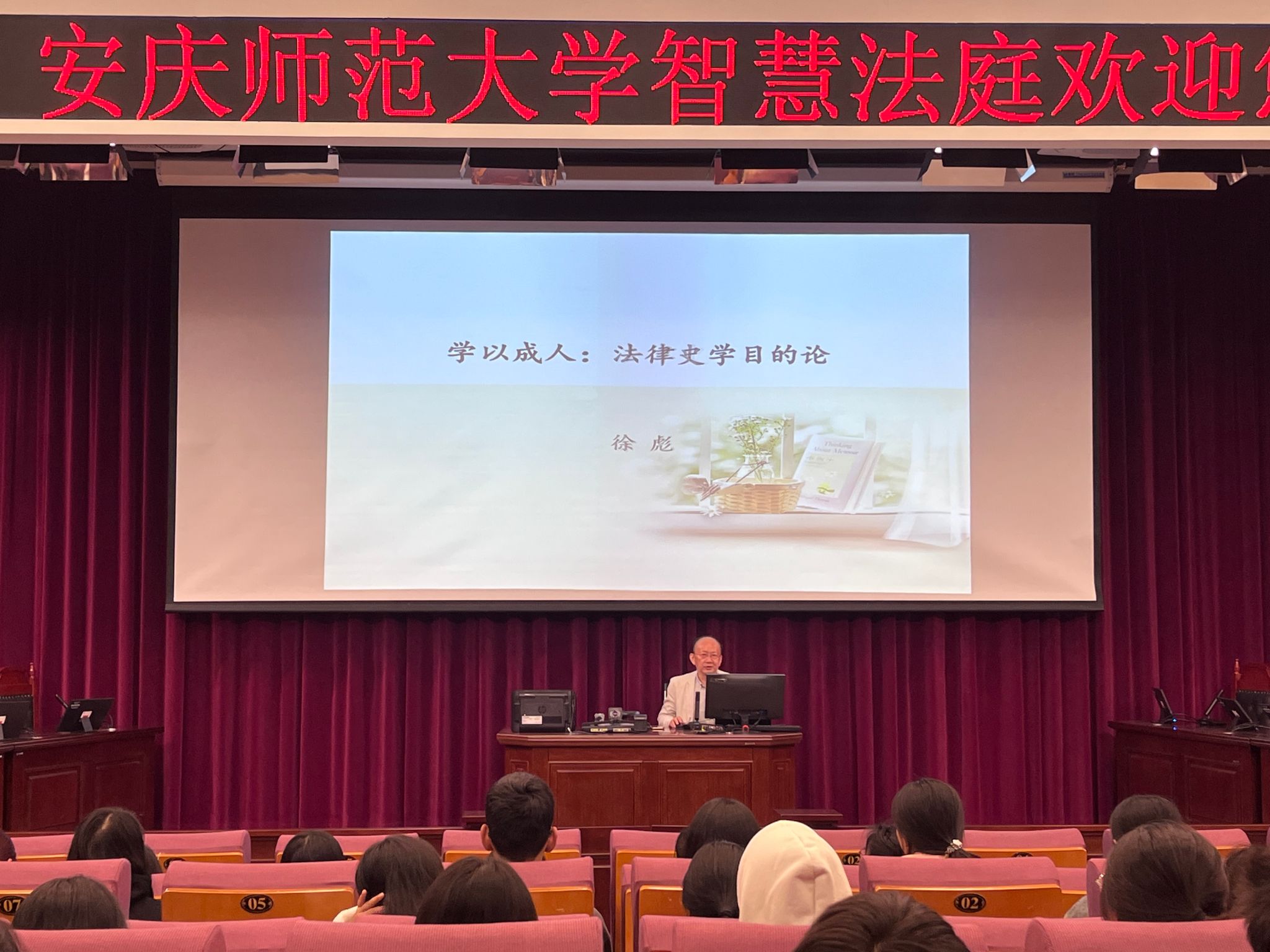 11月5日上午,安徽大学141jj 徐彪教授应邀在模拟法庭作题为“学以成人:法律史学目的论”的学术报告,报告会由141jj 副院长崔汪卫主持,141jj 100余名本科生和部分研究生聆听报告。
