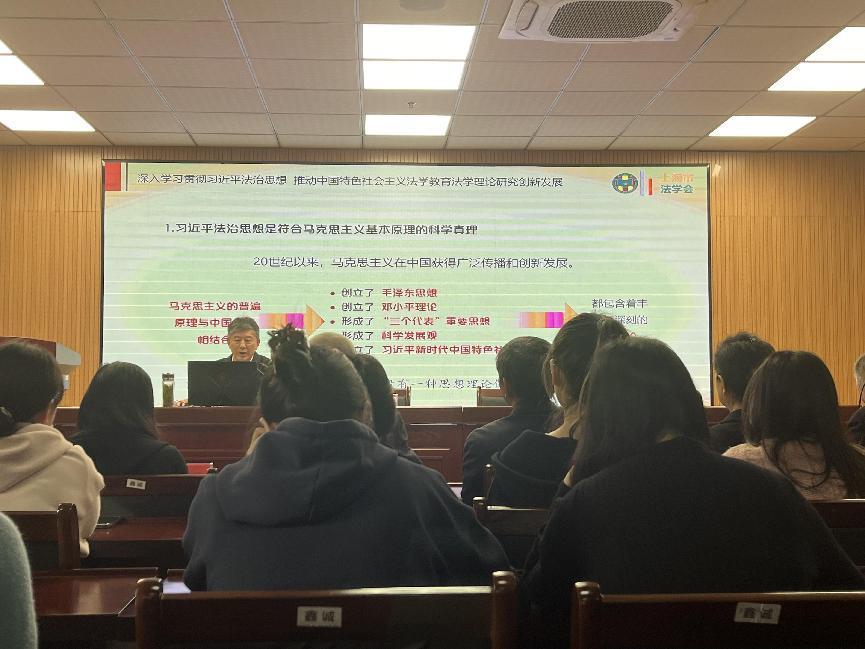 崔亚东会长的报告从习近平法治思想确立的重大意义、准确把握习近平法治思想的精髓要义以及推动新时代法学教育、法学理论研究创新发展,以法学教育现代化支撑中国式现代化三个方面依次展开讲述。他强调,要准确把握习近平法治思想的精髓要义,正确处理现实生活中的一些重大疑难复杂案件。他以自己所承办和处理的一些典型案例,阐明“良法是善治的基础和前提”。他指出,法律从业者要充分发挥法的教化和引领作用,在办案中既要体现法律具有威严的一面,也要体现法律具有温度的一面,充分彰显法治的人民性。