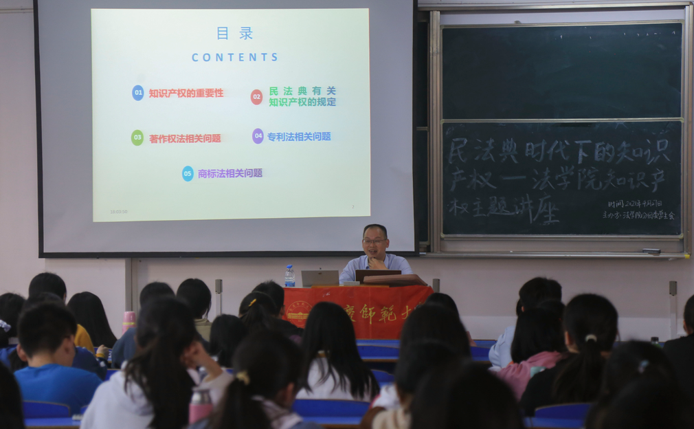 “民法典为什么尚未设置知识产权编?”“申请交叉强制许可的条件是什么?”“先用权是什么?”……崔汪卫一一为学生们解答这些问题,配上风趣幽默的语言风格和丰富的知识语言,引得大家一片称赞。