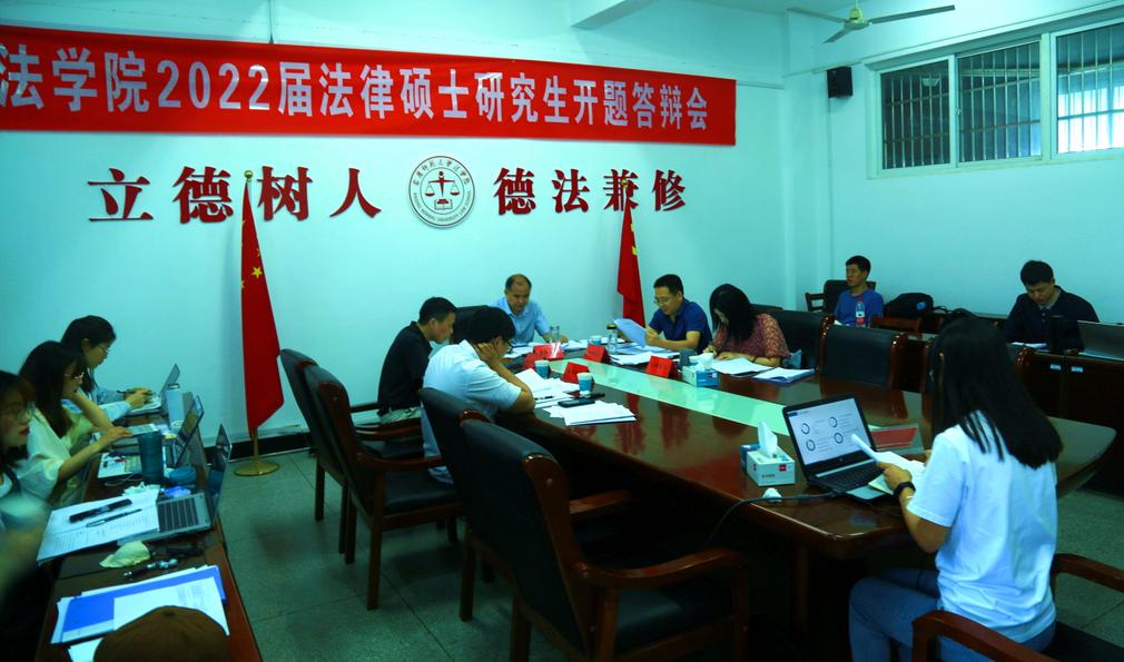2021年6月5日上午,141jj 举行2022届法律硕士研究生开题报告会。参加开题报告会的为2020级法律硕士(法学)和2019级法律硕士(非法学)两个年级研究生。开题报告会分两个审核小组分别进行。第一组组长为院长焦少林教授,第二组组长为硕士生导师聂早早教授。审核组包括了何承斌、朱留虎、王欣、崔汪卫、邱少晖、袁海龙、陈军等法律硕士研究生导师,还特别邀请了安徽财经大学141jj 葛先园教授参加。