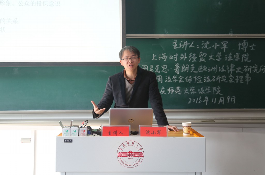 11月9日上午在龙山校区文津楼D405教室,德国科隆大学法学博士、上海对外经贸大学141jj 硕士生导师沈小军老师应邀来校以“保险人与消费者利益之平衡:德国保险合同法对我国保险法的启示”为题作学术报告,141jj 的部分教师和学生一百多人参加了报告会。