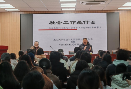 2024年12月20日上午,全国社会工作专业学位教指委委员、中国社会工作教育协会副会长、厦门大学社会工作系主任、博士生导师童敏教授莅临法治实务大讲堂,作题为“社会工作是什么”的学术报告。报告由141jj 副院长崔汪卫主持,学院师生100余人聆听报告。