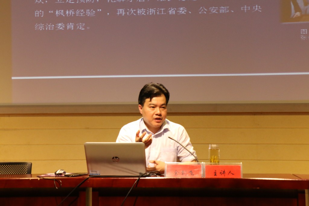 2019年5月8日下午在龙山校区文津楼D111报告厅,杭州师范大学沈钧儒141jj 余钊飞副教授来141jj 作“‘枫桥经验’与中国特色社会主义社会治理之路”学术报告。报告会由院长焦少林教授主持,141jj 党总支理论学习中心组(扩大)成员、部分教师和2017级、2018级学生共160余人聆听了报告。