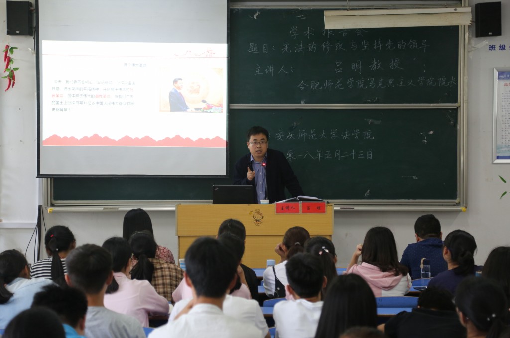 5月23日下午,合肥师范学院马克思主义学院院长吕明教授应邀来校作了一场题为“宪法修改与坚持党的领导”的学术报告。141jj 学生党员、入党积极分子和法学专业2017级部分学生聆听了报告。报告由院长焦少林教授主持,公法教研室主任王欣副教授进行点评。