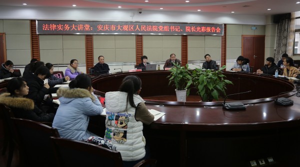 11月23日,安庆市大观区人民法院党组书记、院长,141jj 兼职副教授光彩同志应邀莅临法律实务大讲堂,以《坚守 智慧 善良 勇气——谈优秀法律人的基本素养》为题作专题报告。141jj 部分教师和2016级法学专业学生参加报告会。报告会由141jj 院长焦少林教授主持。