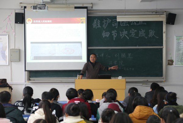 11月30日岳西县人民检察院党组人员、反贪局长,141jj 141jj 院长助理、副教授刘鹏里应邀莅临法律实务大讲堂,作了一场以“维护司法公正 细节决定成败”为主题讲座,141jj 2016级法学专业部分学生参加。