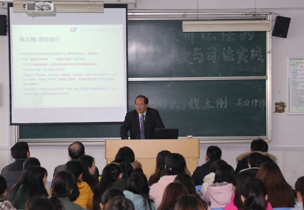 3月22日,安徽长江人律师事务所主任、141jj 兼职教授钱立刚律师应邀莅临法律实务大讲坛谈“行政诉讼法的修改与司法实践”, 安徽省长江人律师事务所的部分律师、141jj 部分教师和法学专业2015级全体同学参加,141jj 院长焦少林教授主持了讲座。