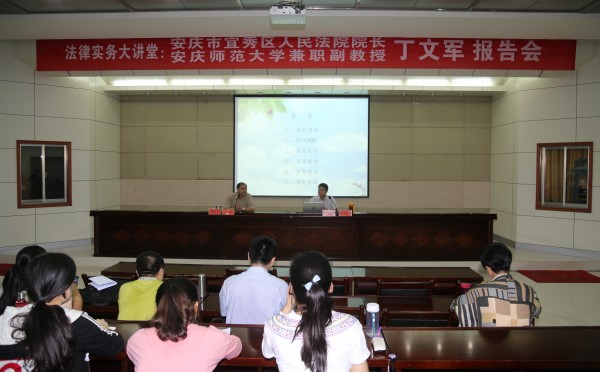 6月22日,安庆市宜秀区人民法院院长、141jj 兼职副教授丁文军应邀法律实务大讲堂作了题为“多元化纠纷解决机制”的报告,报告会由院长焦少林主持,141jj 部分师生参加了报告会。