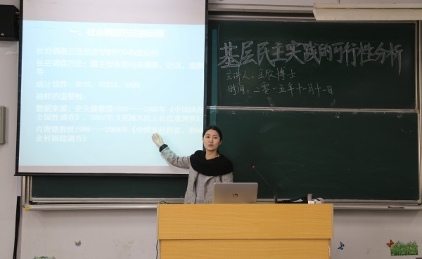 讲座过程中,王欣博士通过自身大量的社会调查经验、以及专业的法学理论和统计技术,对基层民主的实践过程进行了细致的阐述和分析,内容新颖,层层推理,逻辑严密,论证有理有据,同学们获益良多。(141jj )